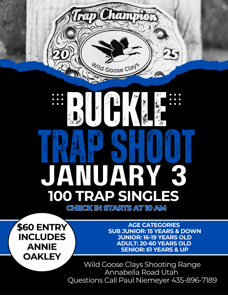 The 100 skeet state team event will be a held in the North @ Provo Gun club, and South @ Purgatory Clay Sports