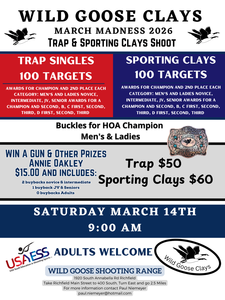 Wild Goose ClaysMarch MadnessTrap & Sporting Clays Shoot 100 Trap and Sporting Clays Targets Win a