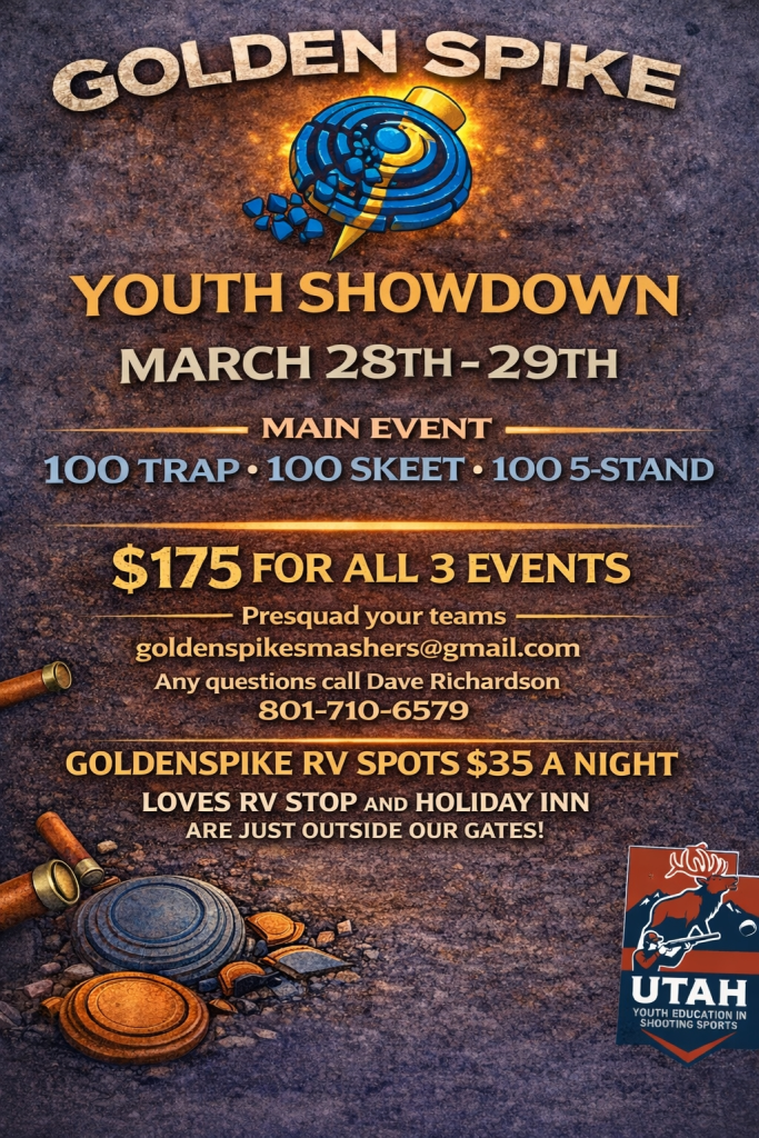USAYESS Western Regionals Warm up - 50 Trap, 50 skeet, 50 sporting clays$70 Per AthletesOpen to the public and mixed Squading, Limited to 40 SquadsHeld @ Lee